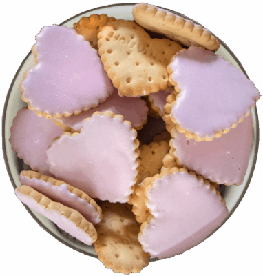 Nostalgische koekjes van vroeger; likkoekjes! Knapperig gebakken in de vorm van een hartje en overgoten met een laagje framboos glacé.