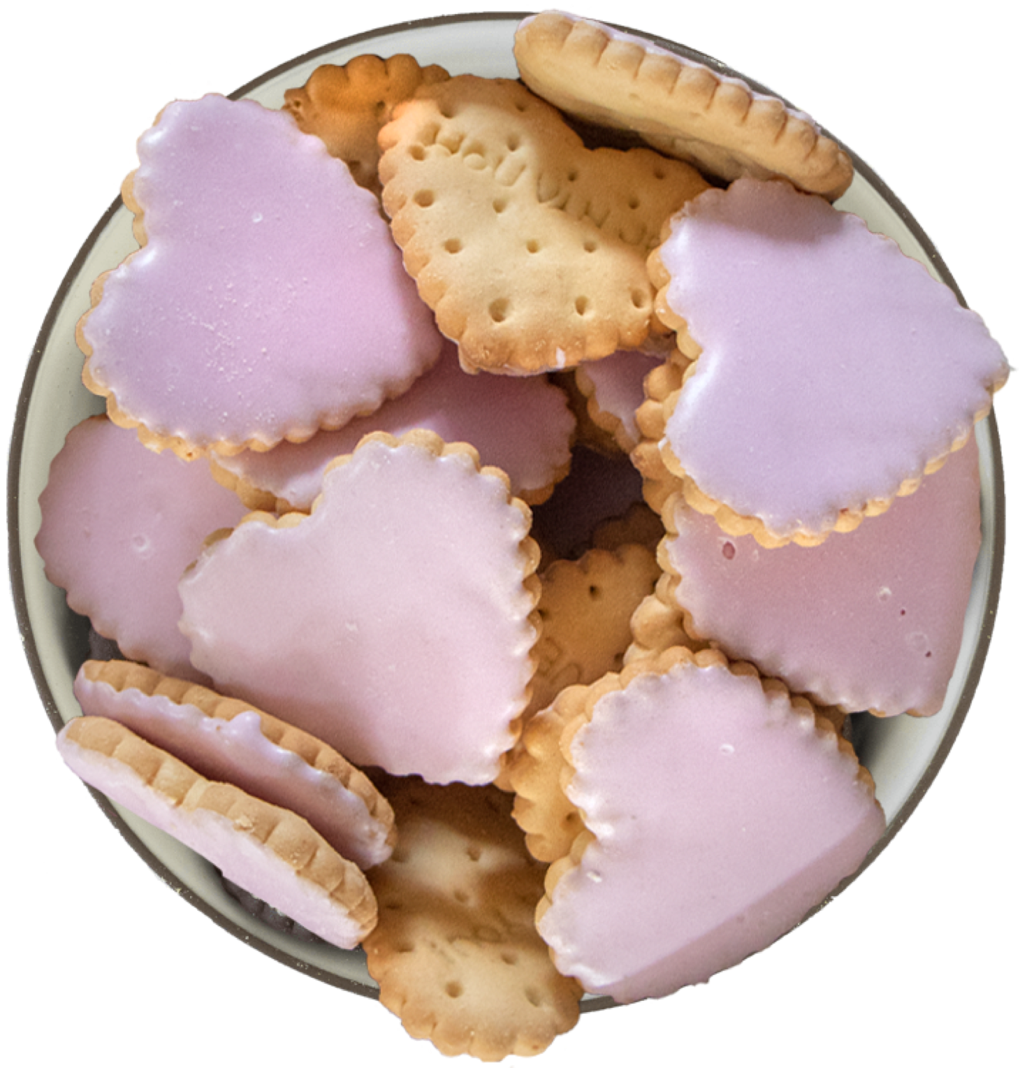Knapperige glacé biscuits in heerlijke volle smaken. Met 28% framboossmaak glacé en toegevoegd vitamine C. In de vorm van een hartje.