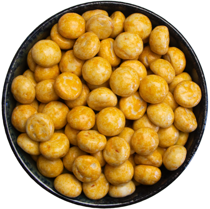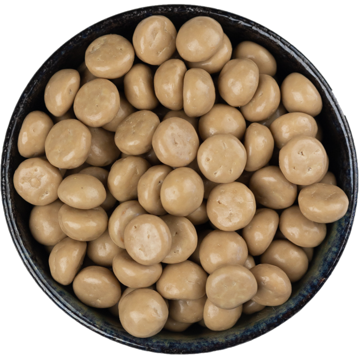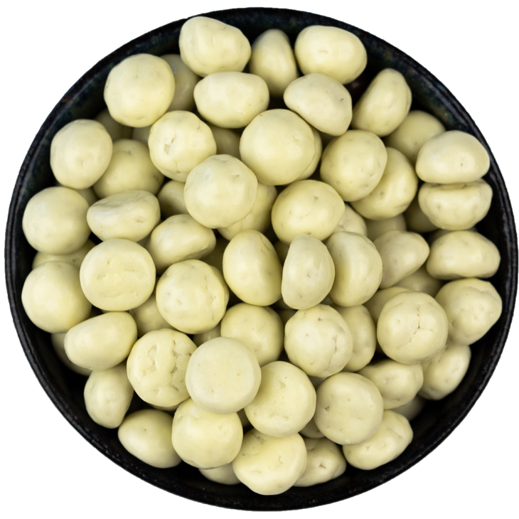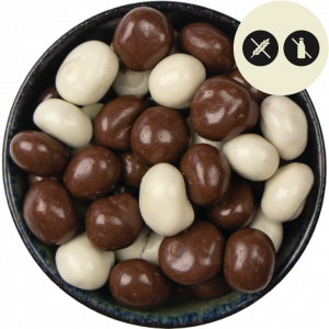 Heerlijke kruidnoten vrij van lactose en gluten met witte coating en chocolade.